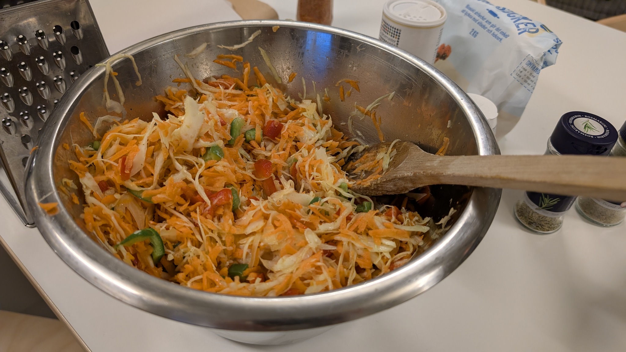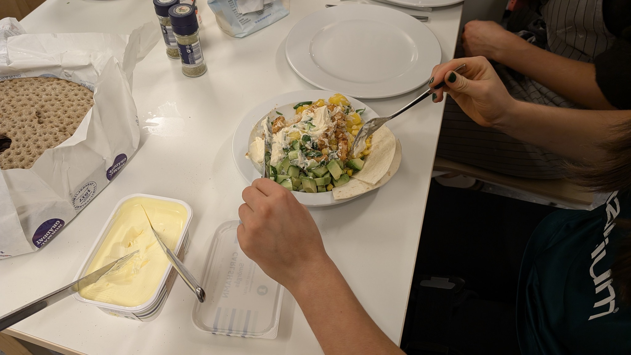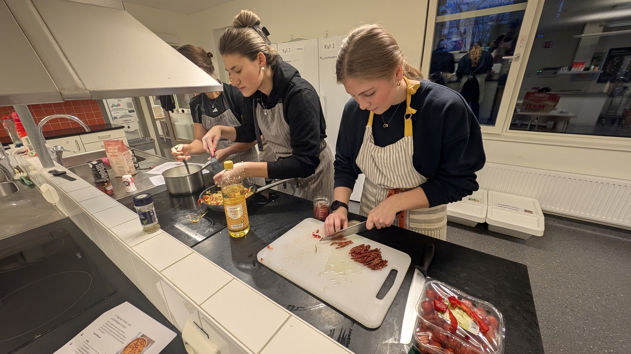 Under kvällen fylldes skolköket av energi, dofter och gemenskap när eleverna tillsammans lagade flera olika rätter.